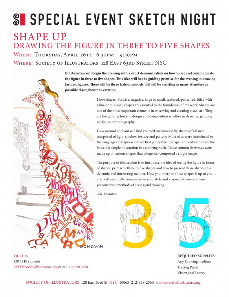 One rainy Thursday of April 26th, the esteemed Society of Illustrators hosted Sketch Night, with the celebrated Bil Donovan as master of ceremonies.