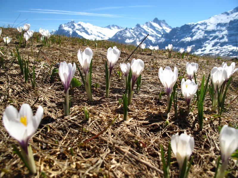 This is my favorite shot of this year. Part of a three-day trip with my family to Grindelwald, a spectacular mountain resort in the Swiss Alps, I hiked on few of the 300 hiking trails and reveled at the perfection of the Swiss natural landscape. On one of our day trips, we took the cable car up to Männlichen, at 2,225m (7,300 feet). After a 30-minute ascent, we arrived on top, to a surreal panorama of the world-famous mountains of the Eiger, Mönch and Jungfrau. Dressed in sneakers and shorts, it was quite an experience to be surrounded by snow and not be cold. We were not allowed to hike down as, although it was June, it was still covered with ice and snow,;however, my brother and I ventured with my four-year-old nephew to the peak of 2,343 m (7,687 feet) where these fragile snowdrops were gracefully blooming.