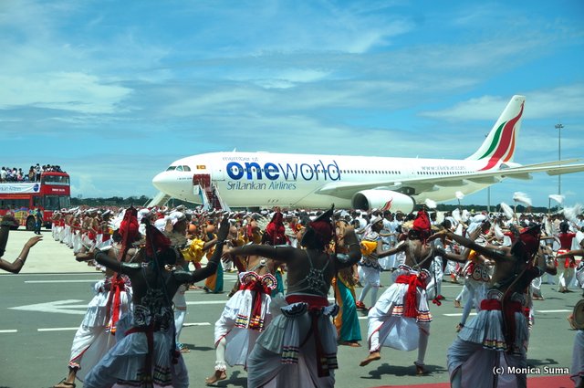 To mark the historical union, key government officials unveiled the first Sri Lankan aircraft with the oneworld logo in a spectacular ceremony held on May 1st at Asia’s newest airport, Hambantota’s Mattala Rajapaksa International. Upon arrival, we were greeted by flanks of Sri Lankan warriors, holding the most impressive shields.
