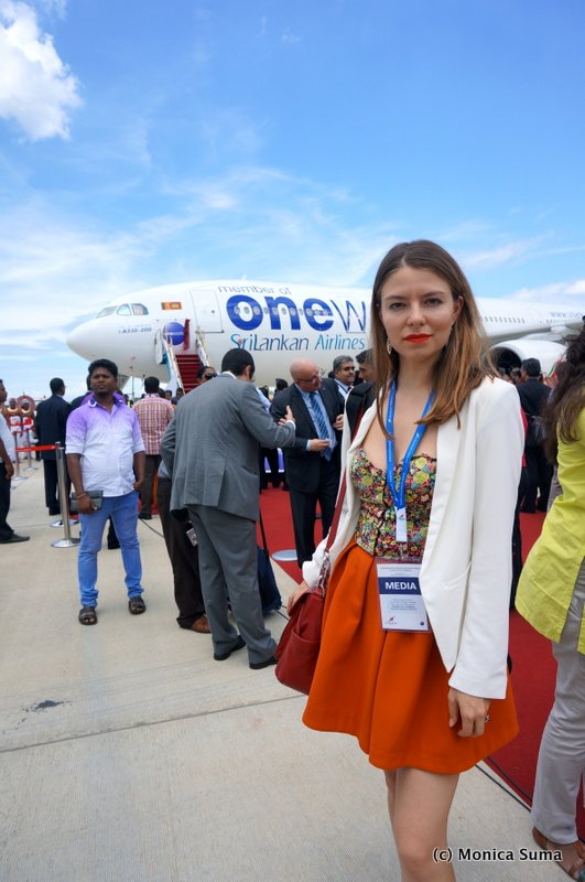 Perhaps my favorite part of the ceremony was when the curtains from the conference room were lifted, only to reveal a myriad of dancers surrounding the new Sri Lankan Airlines aircraft with the oneworld logo, dancing to the beats of traditional music, in an unbeliavable manifestation of culture. It was like nothing that I had ever seen. My eyes were sore at the sheer beauty of what was unraveling.